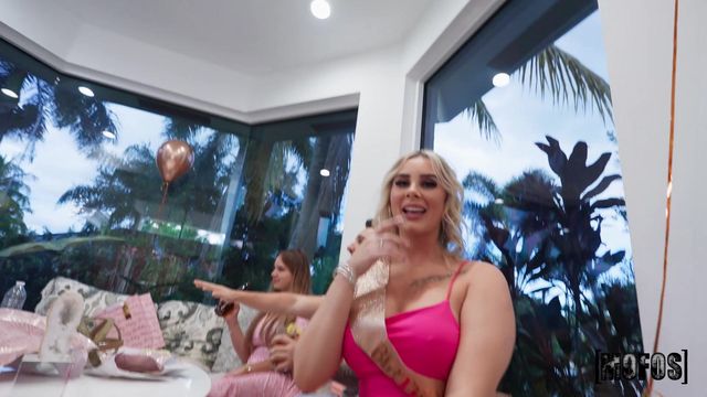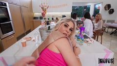 A loira Trixi Brooks que celebra seu aniversário vai deixar que lhe rompam o grande cu por trás enquanto conversa com seus convidados. Que bom presente!