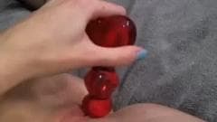 Zara está usando seu vibrador vermelho favorito para se masturbar em frente à câmera, exibindo suas meias de renda sensuais e se sentindo super-tesuda pra você...
