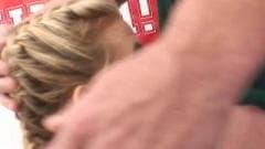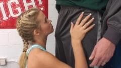 Esta loira bonita não quer ser punido por seu treinador escola para tentar fugir dela, dando-lhe um bom boquete para tentar fazê-lo esquecer seu mau comportamento.