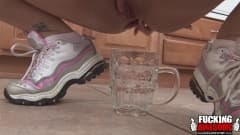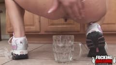 A morena peituda, Moxxie Maddron está em casa fazendo um smoothie saboroso e adicionando um pouco de sabor derramando o suco na bunda antes de beber.