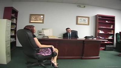 Esta colegial ruiva vai para o escritório do diretor que vai querer tirar proveito dela e então ela soca seu saco das bolas antes de trepar em seu pau...
