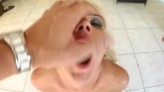 Esta cadela loira está completamente excitada e hoje ela fica aparafusada por dois de seus amigos, um deles a filma em POV enquanto o outro fode com força.
