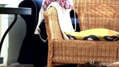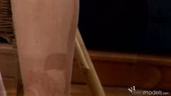 Esta linda e jovem morena que, lenta e sedutoramente, tira a roupa antes de se deitar no chão e tocar seu corpo de uma forma muito sexy.