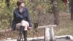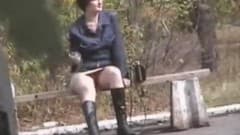 Esta mulher madura está relaxando num parque mas não sabe que está sendo filmada...estranhos filmam sua buceta quando se apercebem que ela não trás calcinha...