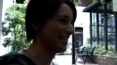 A safada de cabelo escuro está frustrada com sua vida em casa por isso, quando ela conhece um cara em um banco, ela não hesita em transar com ele para aliviar um pouco do seu stress.