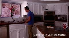 Esta mamãe ensina seu filho sobre sexo e ensina sua namorada como fodê-lo adequadamente para que ele tenha o melhor sexo até gozar na boca da menina...