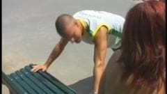 Essa coroa maduro conhece um cara no parque e leva-o para foder casa, primeiro ele penetra sua bunda antes de penetrar sua buceta peluda.