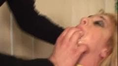 A puta loira que é uma porca e paga gargantas profundas violentamente no pênis de um cara que não quer nada mais do que tratá-la pelo que ela é, uma verdadeira puta!