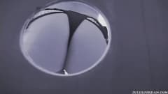 Uma bonita menina ruiva que coloca sua lingerie sexy para a grande ocasião de filmar um vídeo pagando boquete através de um gloryhole!