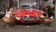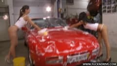 Estas duas morenas lindas estão se divertindo juntas a lavar um carro...É uma lavagem de carro sensual que você não deve perder.