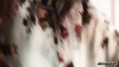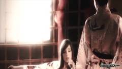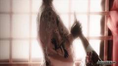 Nesta cena lésbica Cate Harrington está recebendo uma massagem de uma gueixa quando as coisas avançam e elas se revezam para foder uma à outra com um enorme vibrador preto.