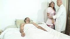 Esta enfermeira transexual e o médico decidem que podem fazer o seu melhor pelo paciente transando com ele e fazê-lo gozar para liberar toda a pressão e maldade.