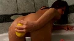 Sandra adora se masturbar no chuveiro e ela gosta de usar o chuveiro na buceta e até mesmo usar seu pato de borracha para se excitar...