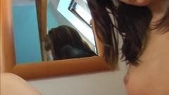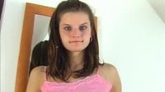 Essa jovem morena está tocando em sua buceta na frente da câmera e seus dedos tornam aquela buceta rosa bem molhada.