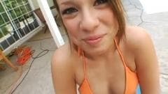 Haley Sweet é uma jovem morena pagando boquete