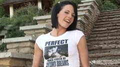 Garota de cabelos escuros mostra-nos como gosta de se preparar para se masturbar com seu vibrador, mas primeiro ela tira lentamente a roupa na frente da câmera.