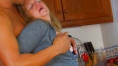 Essa mulher madura que lava pratos, mas um homem nu, então, atacá-la pelas costas e levá-la no chão para fazê-la vibrar com prazer.
