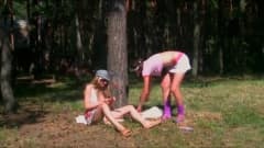 Estas duas vagabundas se masturbam ao ar livre com raquetes de badminton, em um lugar isolado e íntimo, de forma que ninguém pode perturbá-los.