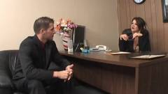 Esta Milf morena e mulher de negócios, Raquel Devine, é capaz de ver o potencial de seus funcionários e vai tirar proveito da capacidade de alguns deles!