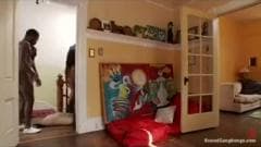 Esta peituda chega em casa para pegar seu telefone um grupo de negros fodem-na de várias maneiras diferentes, não há nada que ela possa fazer,...