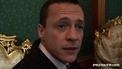 Esta mulher chique e dois de seus amigos estão em uma casa luxuosa, onde estes dois homens se aproveitam de seu corpo quente e sexy!