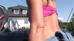 Esta jovem morena sexy ama seu carro e quando ela tem a oportunidade de se masturbar dentro dele, ela o faz...com o seu vibrador.