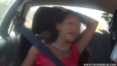 Jade fica excitada com o passeio no carro de drift e ordena o piloto que foda na bunda dela, então ele puxa a piroca pra fora e fode até gozar por todo o seu rabo.
