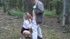 Esta loira amadora está na floresta quando conhece um cara mais velho e uma vez que os dois estão com tesão então fodem, mas não é uma foda normal, porque ela termina mijando na boca dele!
