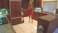 Esta Milf loira e sexy tem um monte de diversão com seu parceiro na cozinha hoje, ela brinca com frutas e desfruta de uma grande foda que termina em uma ejaculação facial.