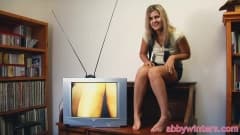 Esta loira brincalhona está com vontade de um pouco de diversão pelo que começa a dedilhar sua buceta e a mostrar na tela de sua TV para que possamos assistir com mais detalhe...