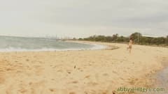 Esta morena se excita em uma sessão de fotos de nudez onde ela está na praia na frente das pessoas, vestida só com sua pele sedosa e suas belas curvas...nada mais!
