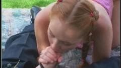 Essa ninfeta está fazendo sua lição de casa ao ar livre, quando esse coroa chega e sugere que eles fodam, com o que ela concorda, então eles têm um pouco de diversão debaixo do sol.