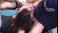 Uma linda morena amadora fica em casa na companhia de um grupo considerável de homens que vãol vendá-la e transar com ela até à exaustão!