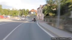 Este homem e sua mulher fazem uma corrida para ver qual é mais rápido entre ela em seu corvette ou ele em sua suzuki, mas eles acabam preferindo uma solução melhor, foder a bunda dela no bosque!