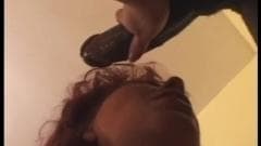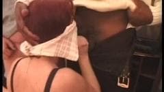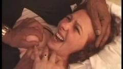 Essa coroa de buceta peluda foi vendada e obrigada a chupar pau a desconhecidos que vão socar sua buceta e seu rabo com suas pirocas grandes!