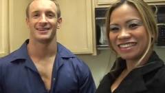 Esse cara é suposto arranjar a cozinha dela, mas ao invés ele está se preparando pra mostrar pra esta japinha safada como se fode e se joga esperma no rosto das vagabundas!
