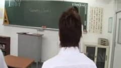 Asiática é fodida na sala de aula por seu professor e colega filma a cena toda.
