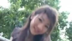 Esta Asiática de buceta peluda faz boquete na floresta antes de ir para casa para ser fodida por dois caras.