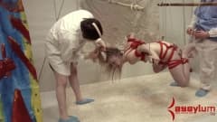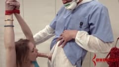 Esta rapariga vai ser amarrada e presa por dois mascarados que vão suspendê-la tratá-la como uma marionete ...