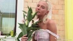 Esta adolescente loira adora se masturbar de maneiras diferentes, com diferentes objetos e hoje ela se fode com um pepino grosso e, em seguida, ela mija no chão para acabar em prazer.