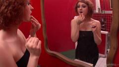 Esta ruiva sexy está no banheiro se preparando para sair quando seu namorado chega querendo transar com ela enquanto registra tudo em POV.