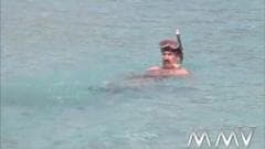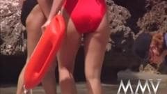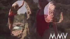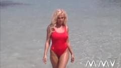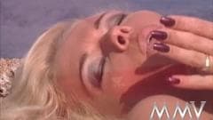 A loira sexy e bonita que se parece com uma bomba de Baywatch e que começa tocando seus seios e sua vagina para dar prazer a si mesma...