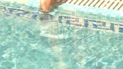 Esta morena quer se masturbar na piscina, mas ela não se contenta apenas com os dedos, de modo que ela usa sua garrafa de água para penetrar a bunda profundamente...