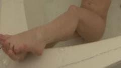 Ela é uma loira que quer se sentir excitada e isso é suficiente para ela mostrar seu corpo nu no banho, enquanto se acaricia a si mesma.