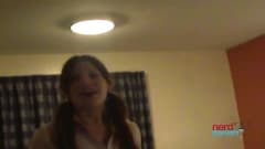 Esta jovem morena está em seu uniforme de escola e mais do que disposta a sugar este pau ficando de joelhos neste POV...