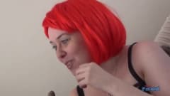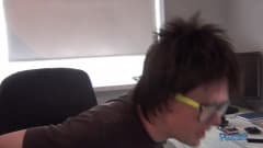 Esse nerd impertinente está sendo sugada por uma morena gorda que gosta de ter a boca cheia de pau como você pode ver...