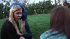Este casal está passeando com seus cachorros no parque quando Emma vem para brincar com eles, o que eles aproveitam para convidá-la em sua casa para uma foda gostosa!