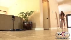A bela vagabunda latina terá o prazer de saborear um bom pénis negro na boca e na buceta até o macho gozar...