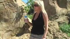 Esta cadela amarrou seu homem ao ar livre e agora está indo para lhe dar prazer de uma forma bem dura, mas ele gosta de dor e não se importa com o que ela faz com ele!