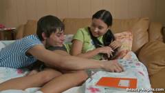 Nesta cena, vemos uma linda jovem morena ficando excitada com o namorado que molha sua buceta e fica de pênis duro para penetrá-la com força!